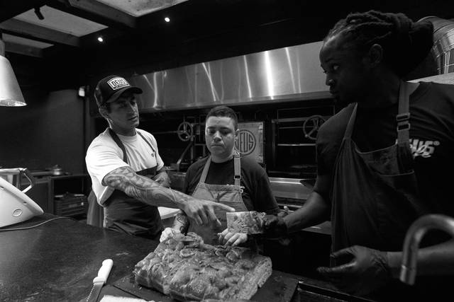 Geralmente não tenho música na cozinha. Os sons do ambiente são uma ferramenta para entender o que está rolando durante o trabalho.